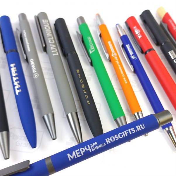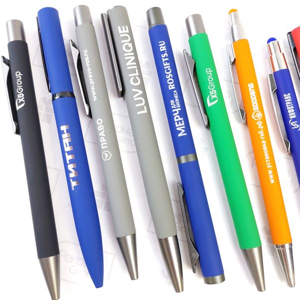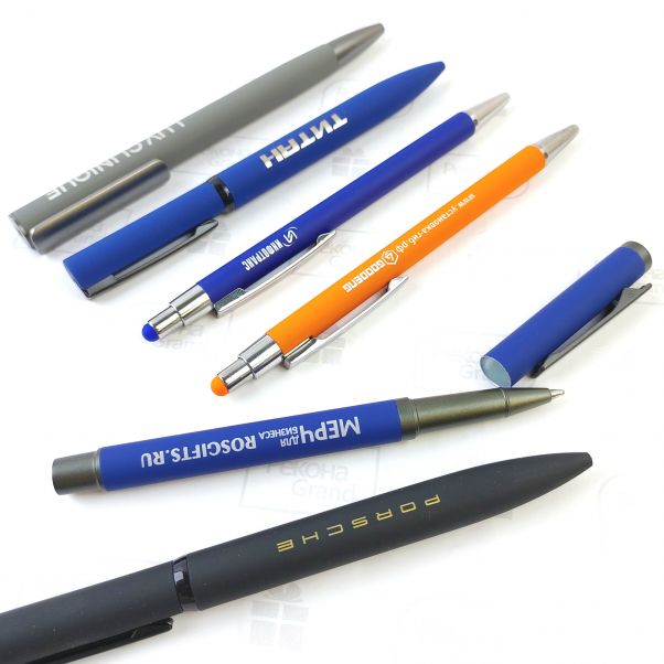 Мы предлагаем заказать ручки с прорезиненной поверхностью с логотипом на заказ. У нас представлены ручки с SoftTouch покрытием, которые изготовлены из пластика и металла. В России нанесение на ручках с SoftTouch покрытием делаем гравировкой на корпусе или печать на клипе. Ручки с софт тач покрытием в наличии на складах в Москве и в Самаре и делаем доставку по России и СНГ.