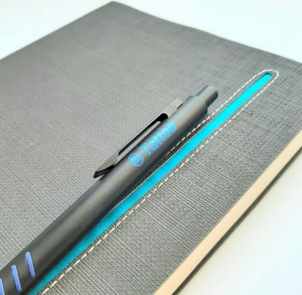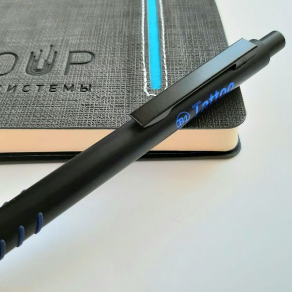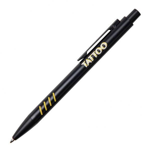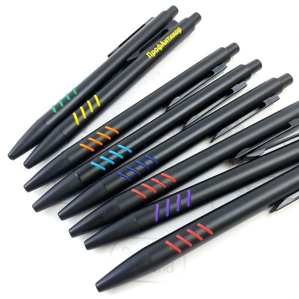 Шариковые ручки Tattoo с нажимным механизмом подачи стержня. Уникальность этих ручек это после гравировки газовым лазером выходит цветная подложка в цвет полосок. И так же на этой ручке возможна двухцветная 3D-гравировка. Зеркальная подложка в цвет прорезиненных вставок в сочетании с белым матовым покрытием позволяют получить эффект объема при нанесении логотипа или рекламного слогана. Область нанесения в описании в шаблоне для макетов.