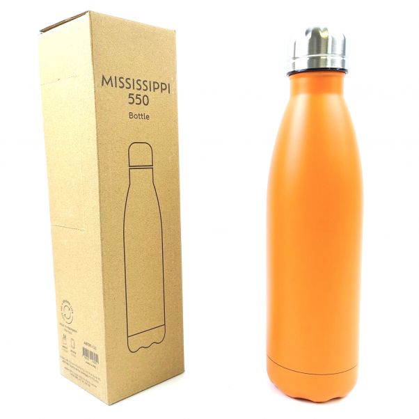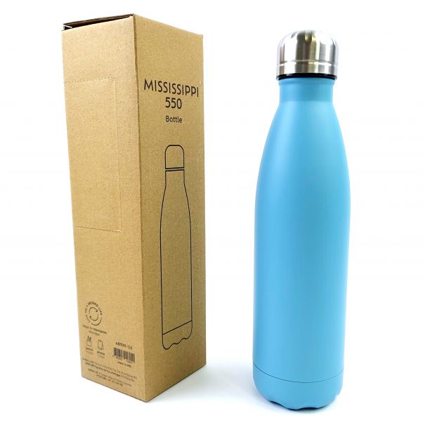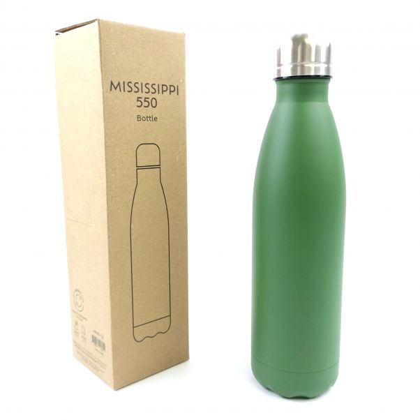 Термобутылки Mississippi ёмкостью 535 мл изготовлена из переработанной нержавеющей стали и покрыта цветным лаком в минималистичном матовом оттенке. Двойная изоляция стенок сохранит напитки горячими в течение 14 часов и холодными в течение 48 часов. Изделие разработано в Европе. На донышке имеется значок переработки. Бутылка Mississippi герметична, покрыта цветным лаком и пригодна для мытья в посудомоечной машине. Привлекательный аксессуар, который поможет поддерживать водный баланс.Поставляется в индивидуальной экологичной и функциональной крафт-коробке, коробка имеет функцию подставки под телефон и подставку под ручки/карандаши.