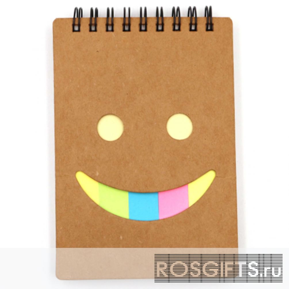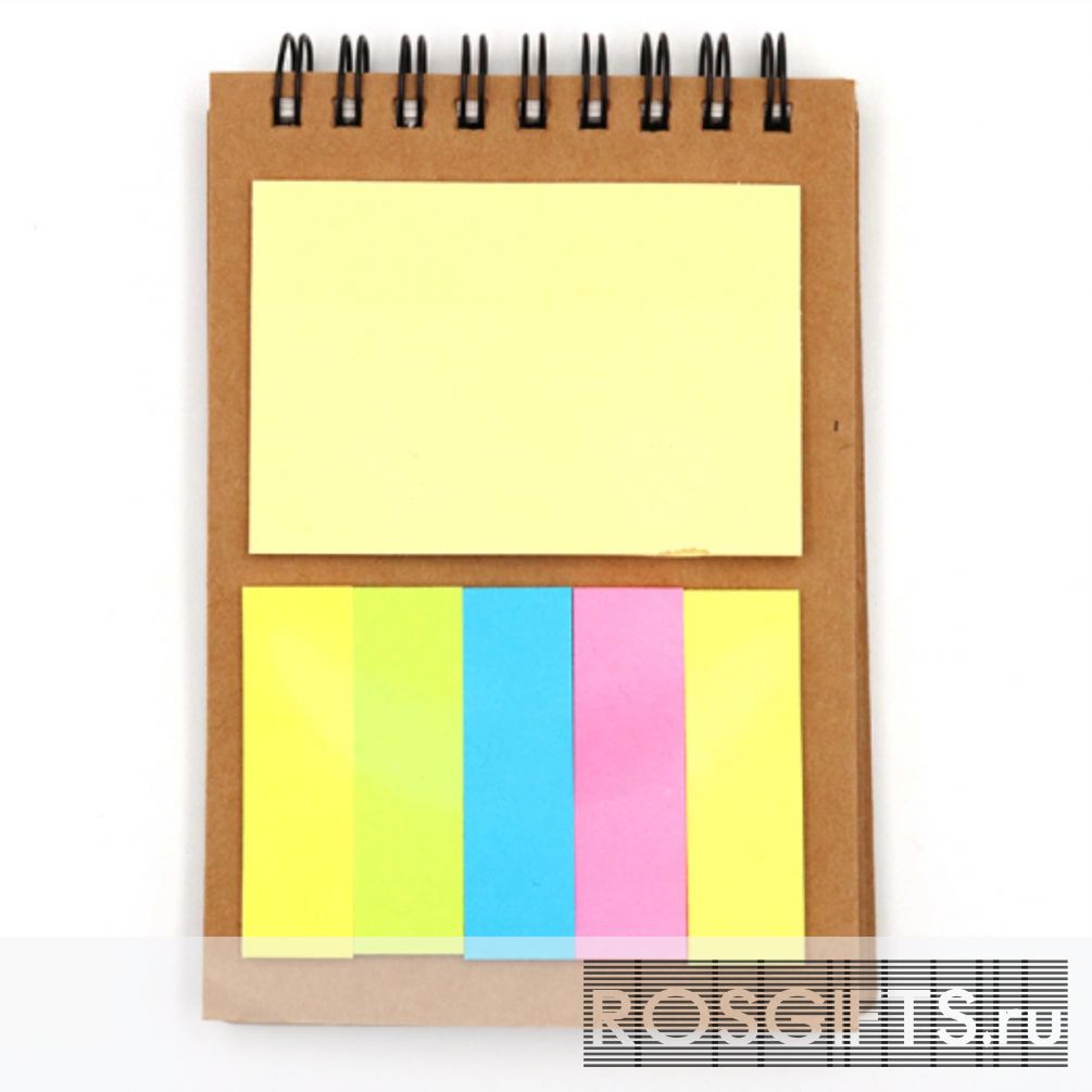 Компактный блокнот с обложкой из переработанного картона с вырубкой на обложке в комплекте со стикерами. Блок из переработанной бумаги 70 страниц разлинованный.