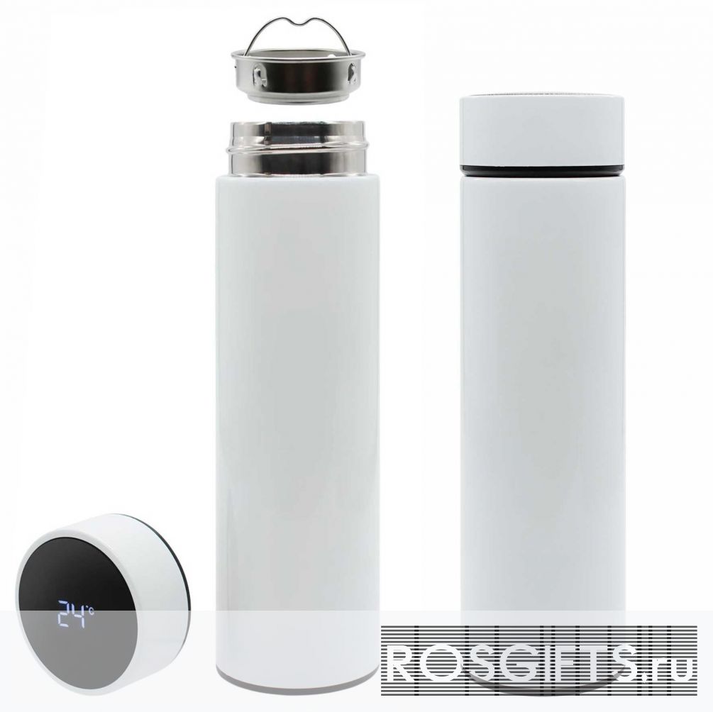 Белый термос с индикатором температуры