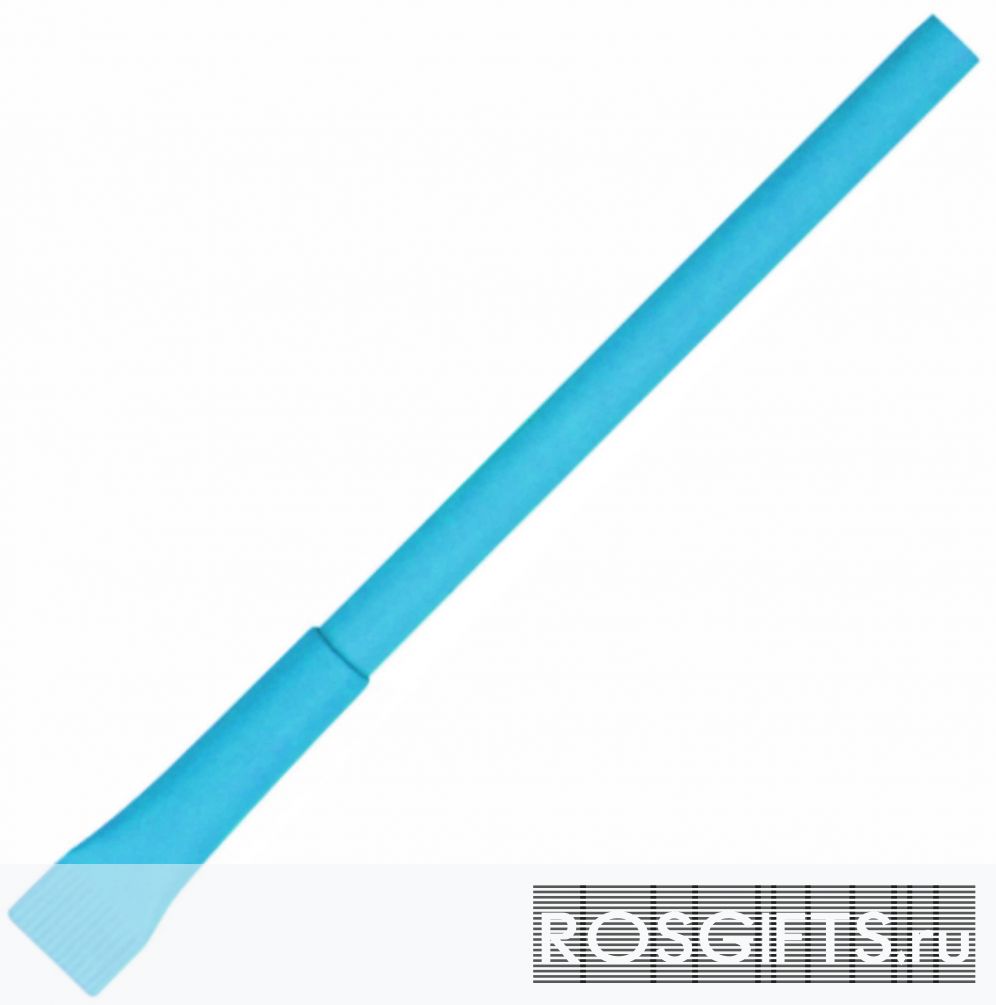 Голубого цвета шариковая ручка с колпачком. Корпус и колпачок изготовлены из переработанной бумаги. Хорошие стержни с ресурсом до 1000 метров письма.  Возможности нанесения символики тампопечать как на корпусе так и на колпачке - область нанесения указана в шаблоне для макетов. Оформить заказ на бумажные ручки голубого цвета можно от 1000 штук.