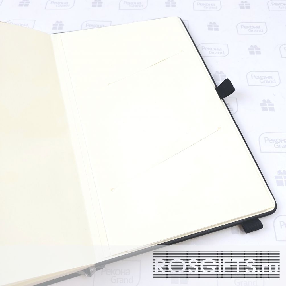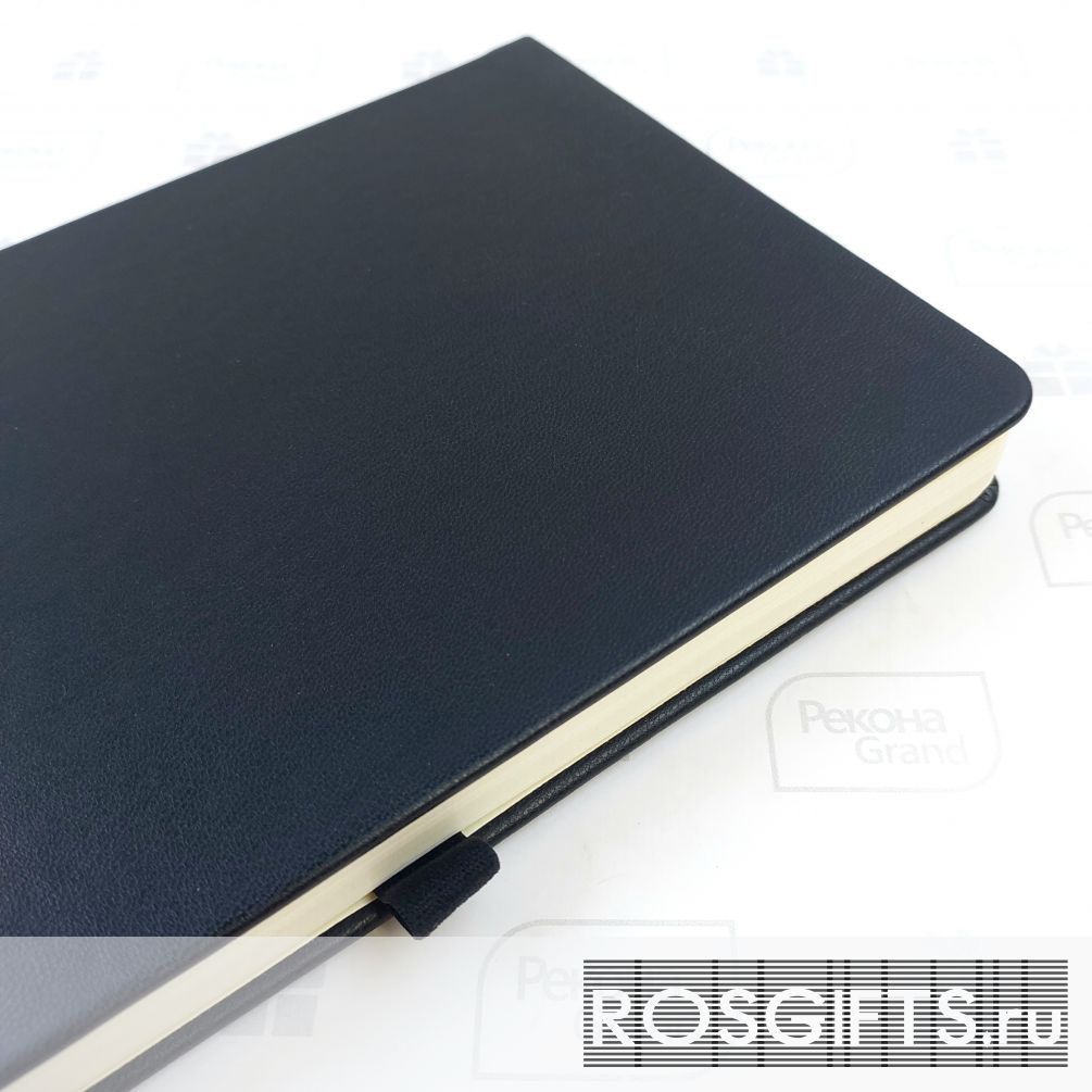 Стильный бизнес-блокнот с обложкой из термоактивного полиуретана Sensi, по фактуре и тактильно напоминающий лайковую кожу, невероятно приятный на ощупь. Твердый переплет и качественная бумага из эвкалипта в FSC сертификатом, графика блока напоминает недатированный ежедневник. Углы блока скругленные. Есть карман для визиток или заметок.