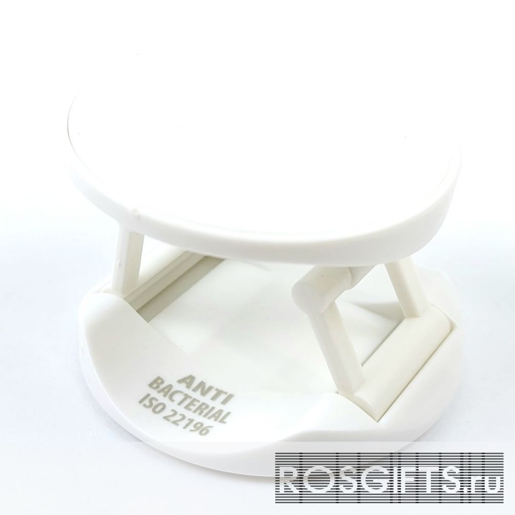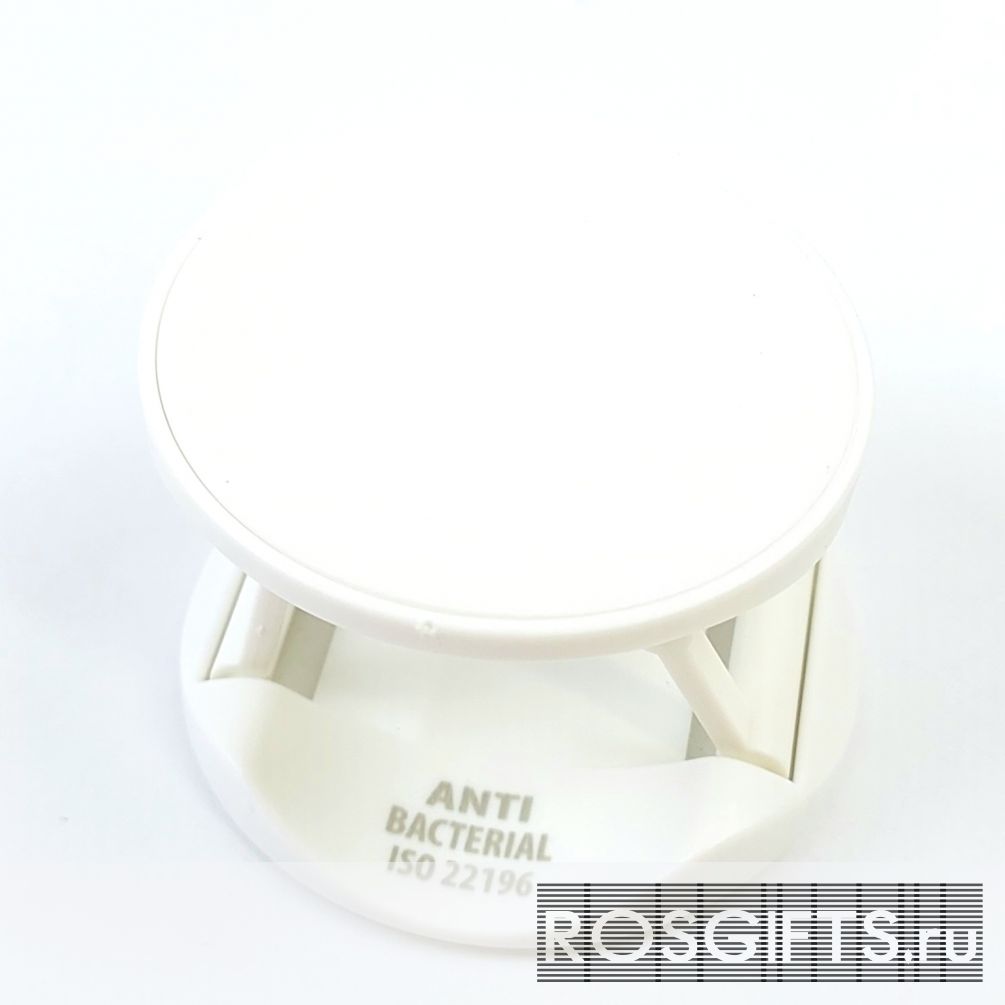 Универсальный держатель крепится на заднюю крышку смартфона. Благодаря конструкции-трансформеру имеет 5 статичных положений, что позволяет устанавливать смартфон на поверхность с комфортным вам углом для просмотра. Держатель имеет регулируемое отверстие для пальца (2 положения) что позволяет не выронить случайно смартфон из рук. Держатели для телефона изготовлены из безопасного антибактерильного пластика ISO 22196. Минимальный заказ от 200 штук.