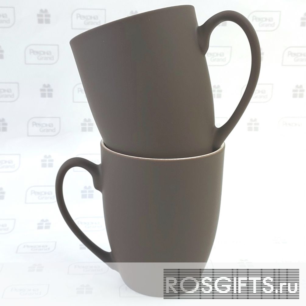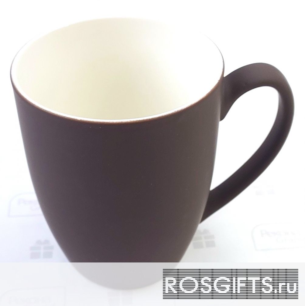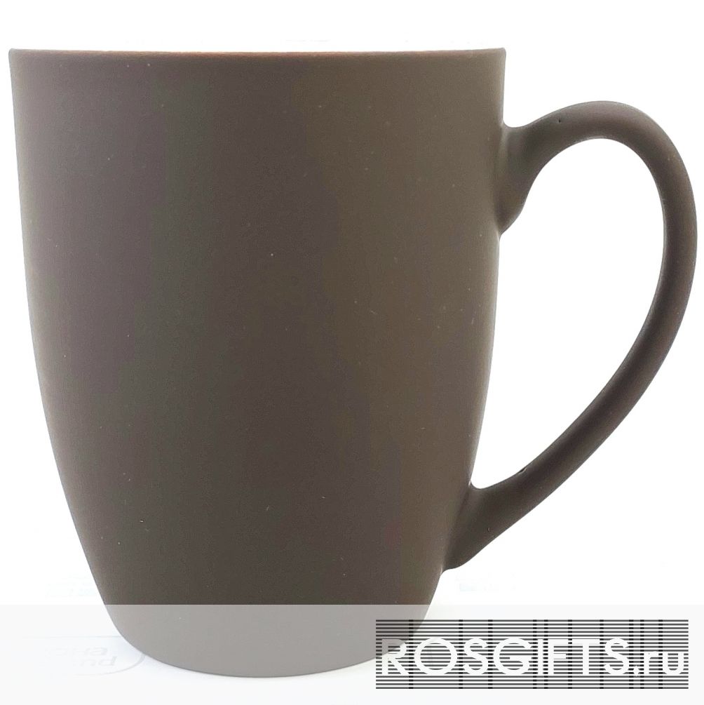 Коричневого цвета фарфоровые кружки с покрытием soft touch. Удобный объём 350 мл делает её удобной для дома или для офиса. Можно делать персонализацию - область нанесения в шаблоне для макетов. Оптовый заказ от 100 штук.