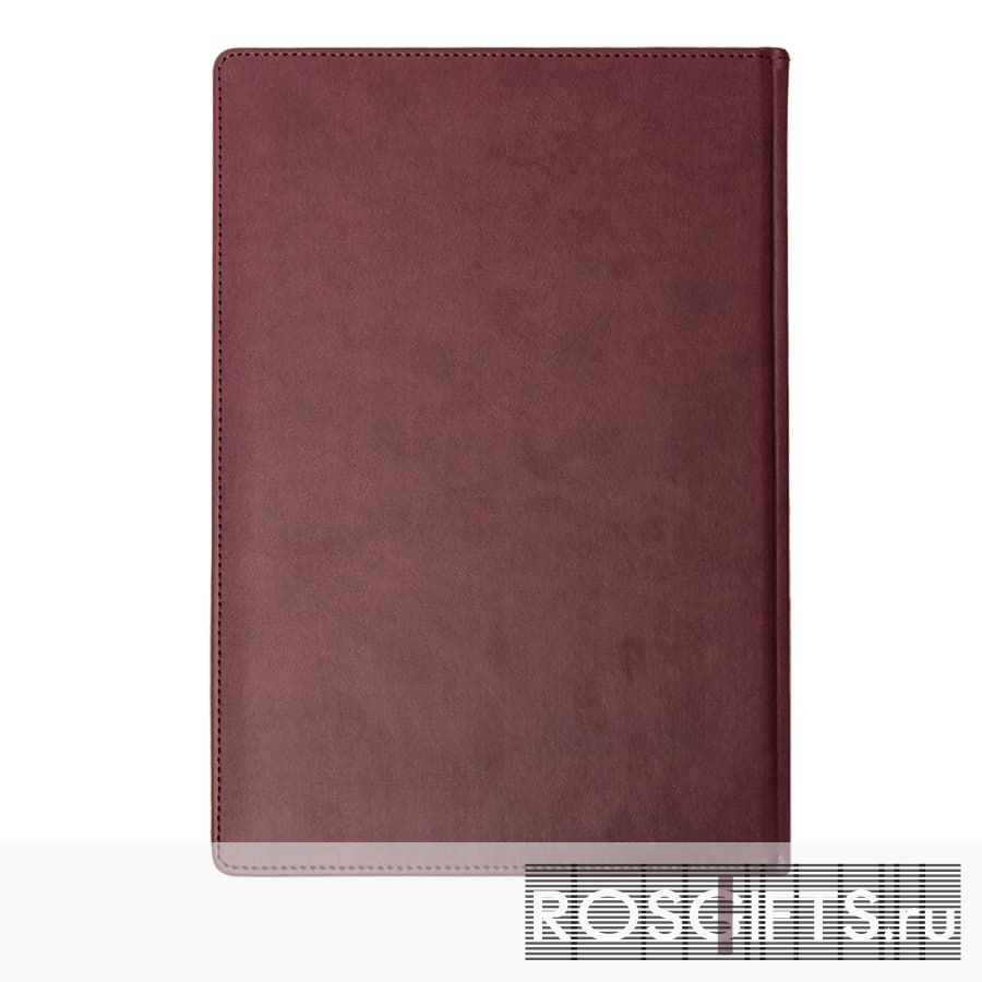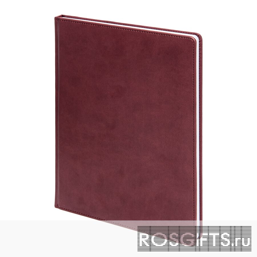 Бордового цвета недатированный ежедневник формата А4 в твердом переплете. Обложка вивелла с прошивкой по периметру. Возможности нанесения: Тиснение блинтовое или фольгой, шелкография, уф-печать. Недатированный блок 272 страниц, белая бумага плотностью 70 г/м2, цветное ляссе.