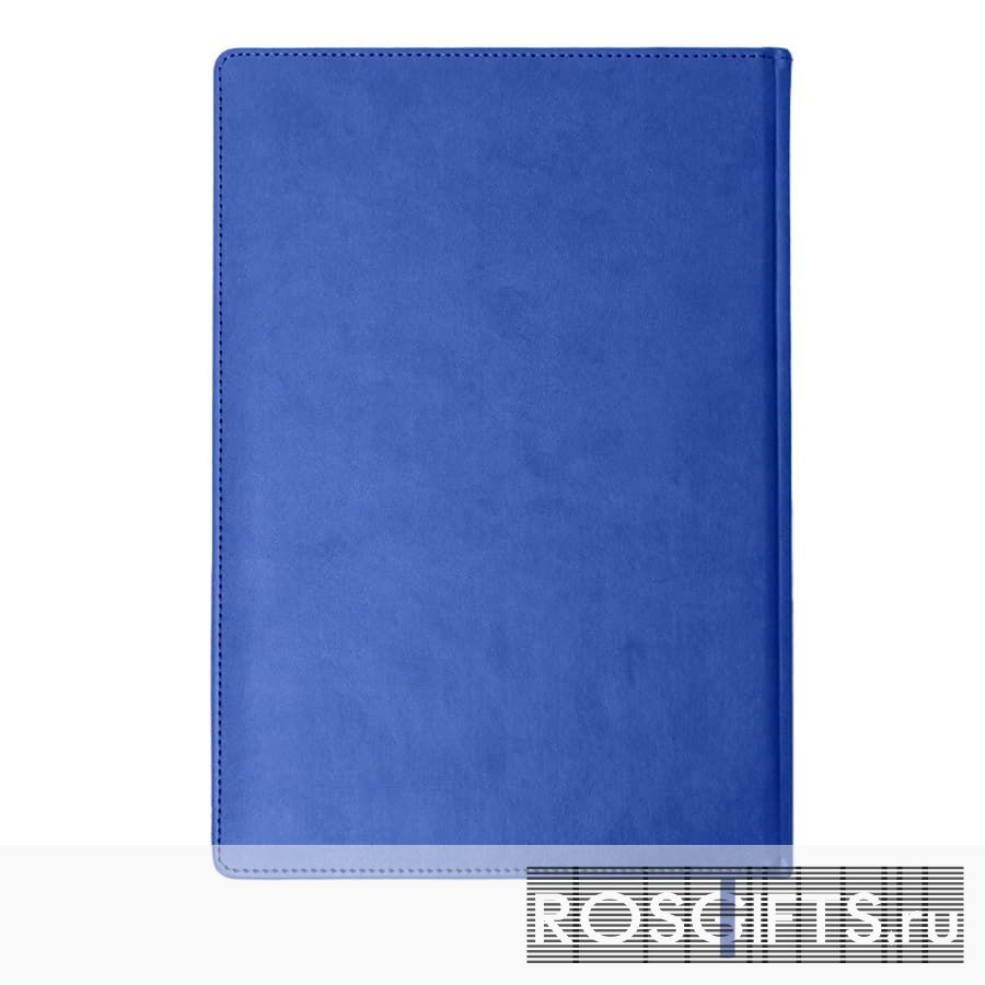 Синего цвета недатированный ежедневник формата А4 в твердом переплете. Обложка вивелла с прошивкой по периметру. Возможности нанесения: Тиснение блинтовое или фольгой, шелкография, уф-печать. Недатированный блок 272 страниц, белая бумага плотностью 70 г/м2, цветное ляссе.