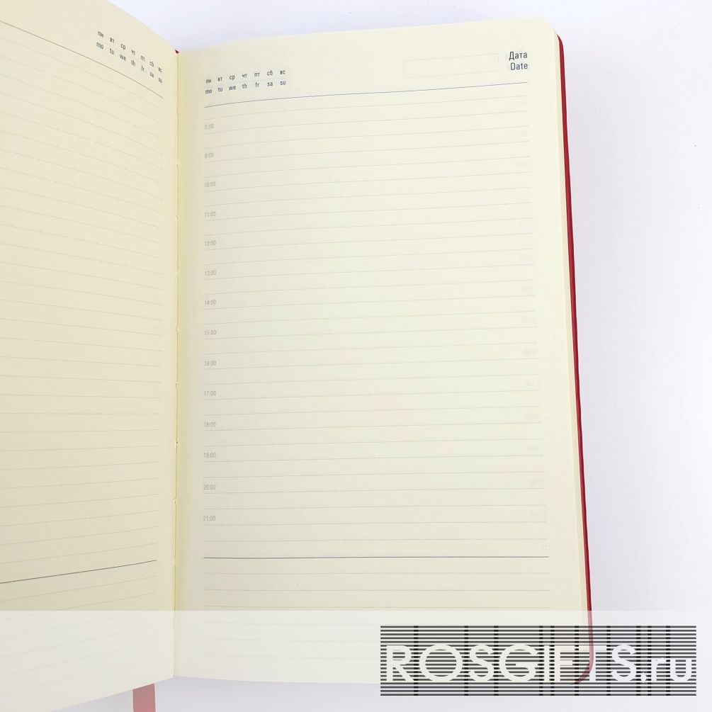 Обложка фактурная матовая термоактивная из итальянского PU-материала Vertu в твердом переплете. Блок недатированный в линейку 272 страницы, бумага кремовая плотностью 70 г/м2 со скругленными углами и двухцветной печатью. Шелковистая закладка в цвет обложки. Нанесение можно сделать на лицевой стороне на обложке ежедневника и на шильде, так же с обратной стороны ежедневнка можно сделать нанесения. В шаблоне для макета можно посмотреть области нанесения.