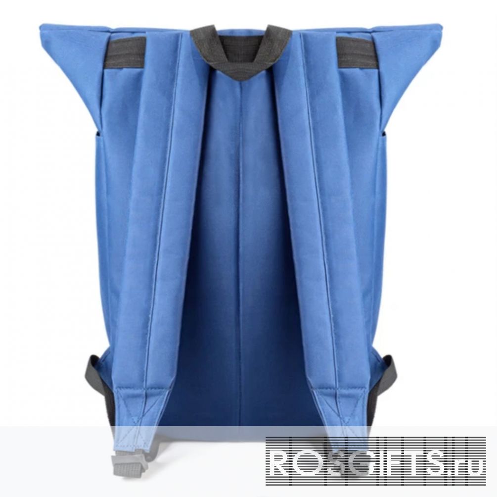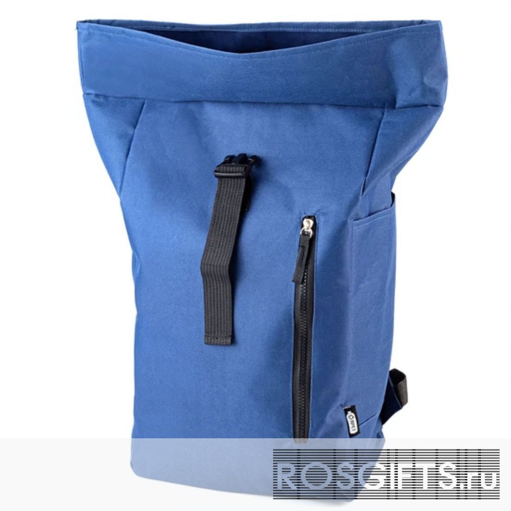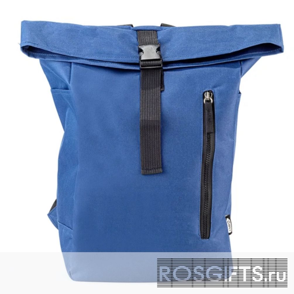 Универсальный синий городской ролл-топ рюкзак ARGON из переработанного полиэстера RPET. Одно основное отделение закрывается на регулируемый по длине ремень c пряжкой-фастексом. На передней стенке вертикальный карман на молнии-тракторе. Два боковых открытых кармана. Короткая ручка и уплотнённые регулируемые по длине плечевые ремни. Уплотнённая задняя стенка.