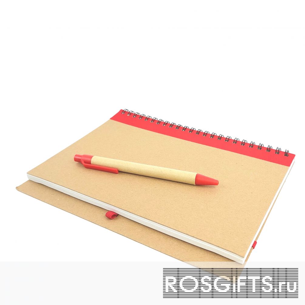 Классического формата эко блокнот натурального цвета с красной отделкой с ручкой в комплекте – это компактный и удобный набор для записей. В комплекте идет блокнот и шариковая ручка с синими чернилами. Блокнот выполнен в лаконичном стиле, имеет прочную обложку из переработанного кратона и удобный формат, позволяющий брать его с собой. Блок белая нелинованная бумага 60 листов. Упаковка индивидуальный ПЭТ пакет.