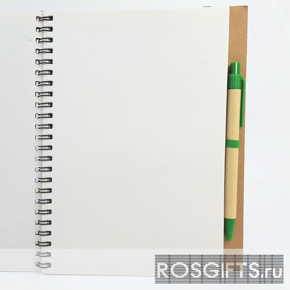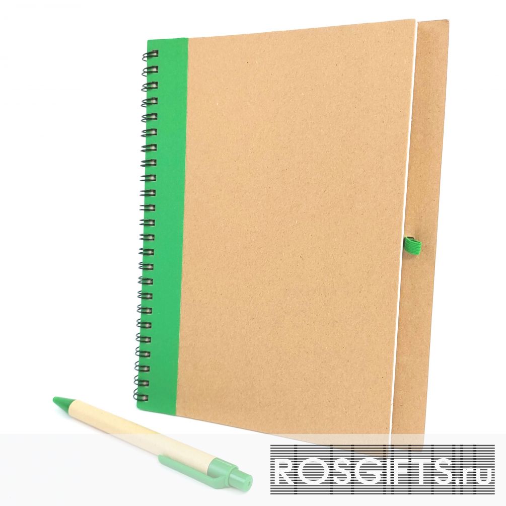 Классического формата эко блокнот натурального цвета с зеленой отделкой с ручкой в комплекте – это компактный и удобный набор для записей. В комплекте идет блокнот и шариковая ручка с синими чернилами. Блокнот выполнен в лаконичном стиле, имеет прочную обложку из переработанного кратона и удобный формат, позволяющий брать его с собой. Блок белая нелинованная бумага 60 листов. Упаковка индивидуальный ПЭТ пакет.