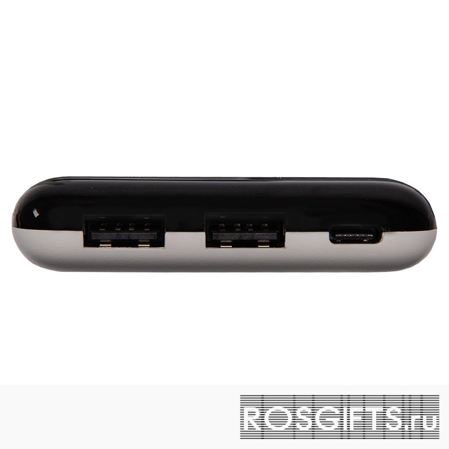 Внешний аккумулятор имеет пластиковый матовый корпус с ЖК-дисплеем, который покажет оставшийся уровень заряда в любой момент. Пауэрбанк заряжается через универсальный порт Type-C или Micro-USB и отдает энергию через два классических порта USB. Благодаря встроенному в корпус дисплею, следить за расходом батареи стало удобнее. Заряд показывается в процентах. Размер 13,9х6.9х1,4 см; коробка: 17х10.3х3 см.