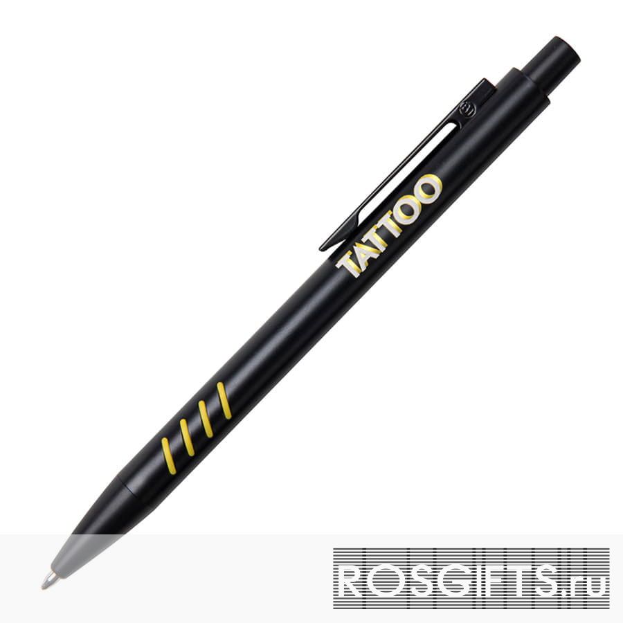 Шариковая ручка Tattoo с нажимным механизмом подачи стержня. Уникальность этих ручек это после гравировки газовым лазером выходит цветная подложка в цвет полосок. И так же на этой ручке возможна двухцветная 3D-гравировка. Зеркальная подложка в цвет прорезиненных вставок в сочетании с белым матовым покрытием позволяют получить эффект объема при нанесении логотипа или рекламного слогана. Область нанесения в шаблоне для макетов.