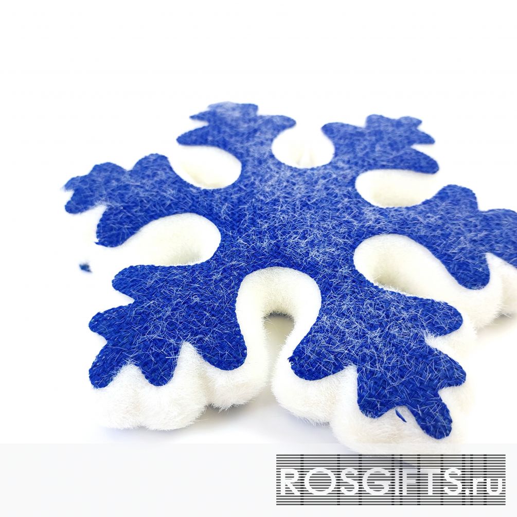 Необычный дизайн украшения с эффектным тканевым покрытием, которое несет в себе тепло. Поверхность адаптирована для персонализации (плоская поверхность). С каждым годом, новогодние украшения поражают необычными дизайнами. Новогоднее украшение в виде снежинки так же можно дополнить и любой подарочный набор.