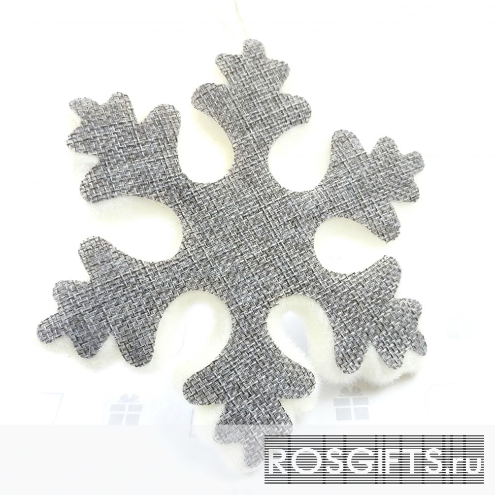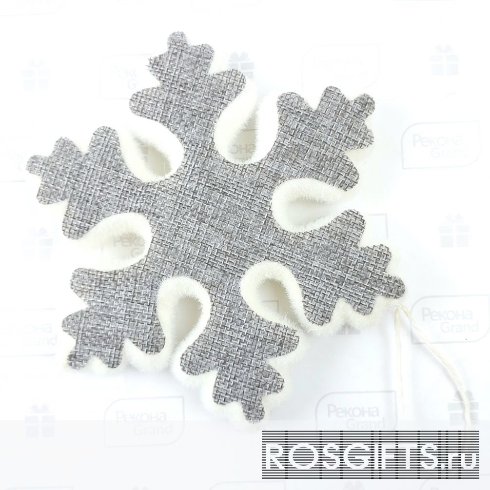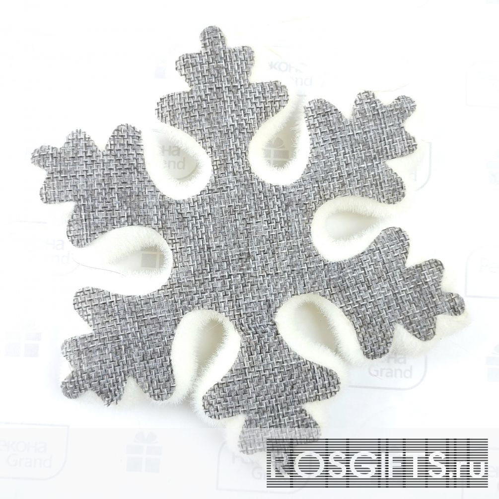 Необычное праздничное новогоднее украшение в виде снежинки серого цвета с белым обрамлением. Такая снежинка будет прекрасным дополнением подарочного набора к новому году.