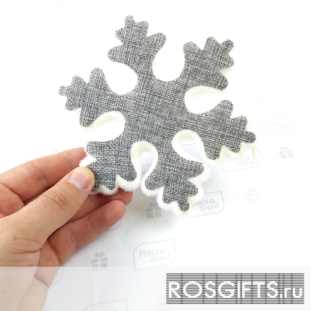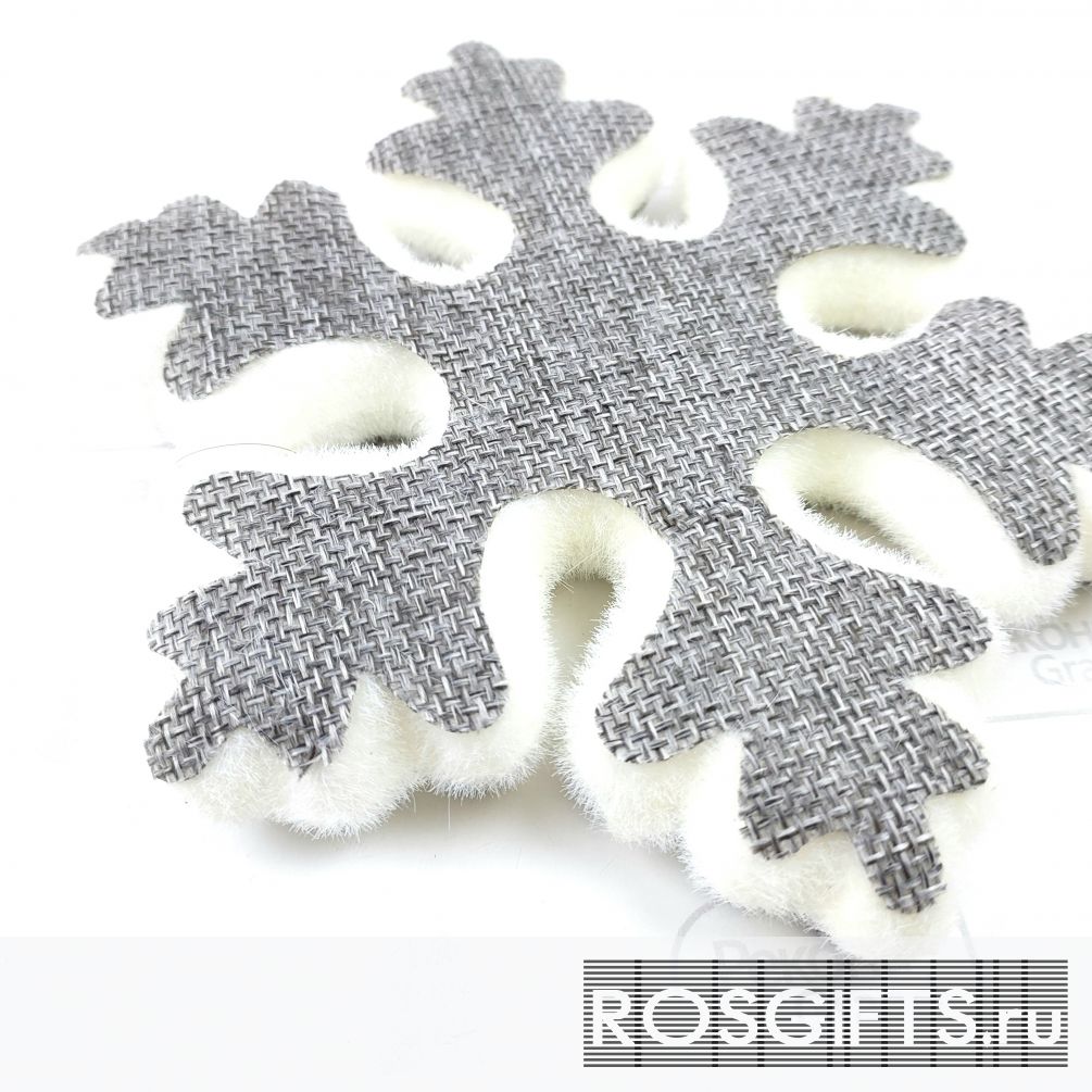 Необычный дизайн украшения с эффектным тканевым покрытием, которое несет в себе тепло. Поверхность адаптирована для персонализации (плоская поверхность). С каждым годом, новогодние украшения поражают необычными дизайнами. Новогоднее украшение в виде снежинки так же можно дополнить и любой подарочный набор.