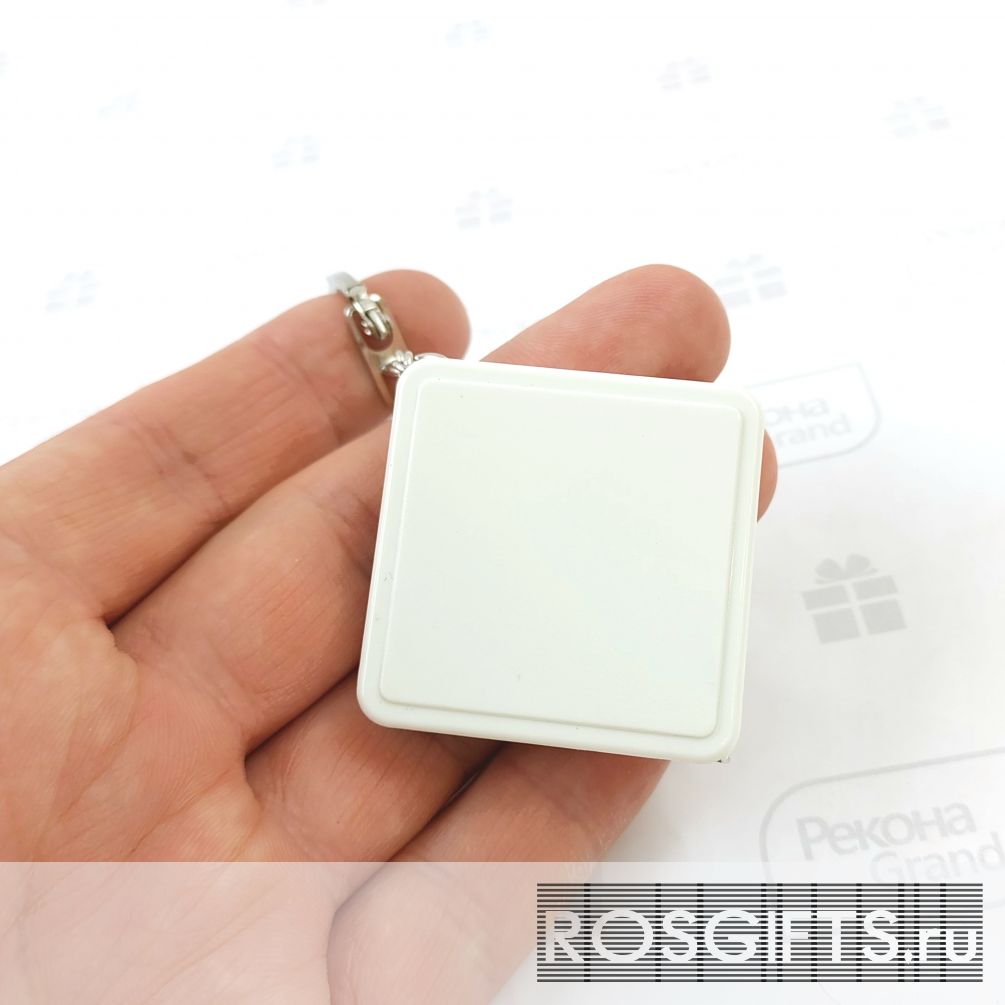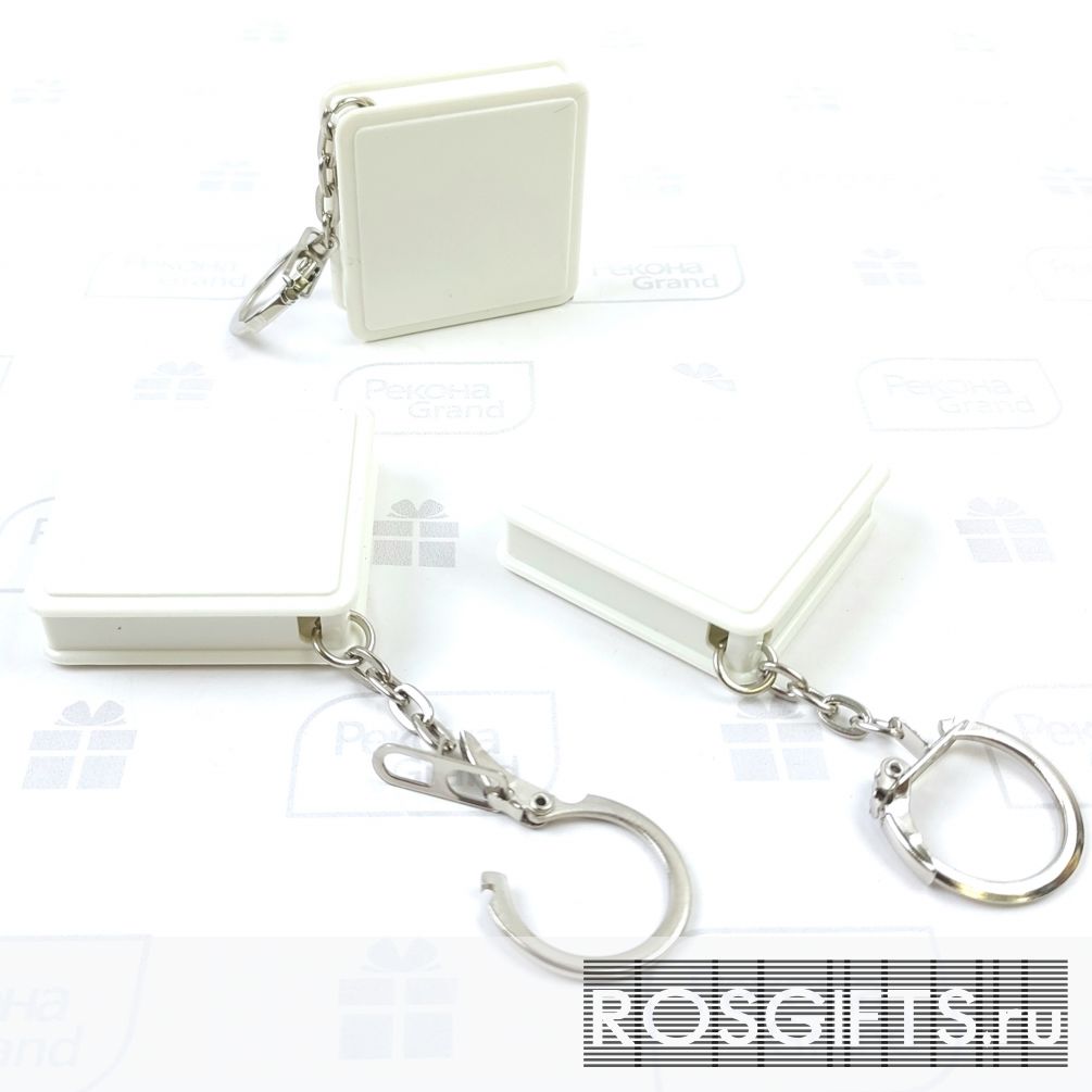 Классической формы брелок с встроенной рулеткой и металлической нитью внутри, длинна рулетки 1 метр. Рулетка оснащена металлическим карабином. На поверхности рулетки можно делать нанесение с двух сторон. Возможное виды нанесения тампопечать, уф-печать.