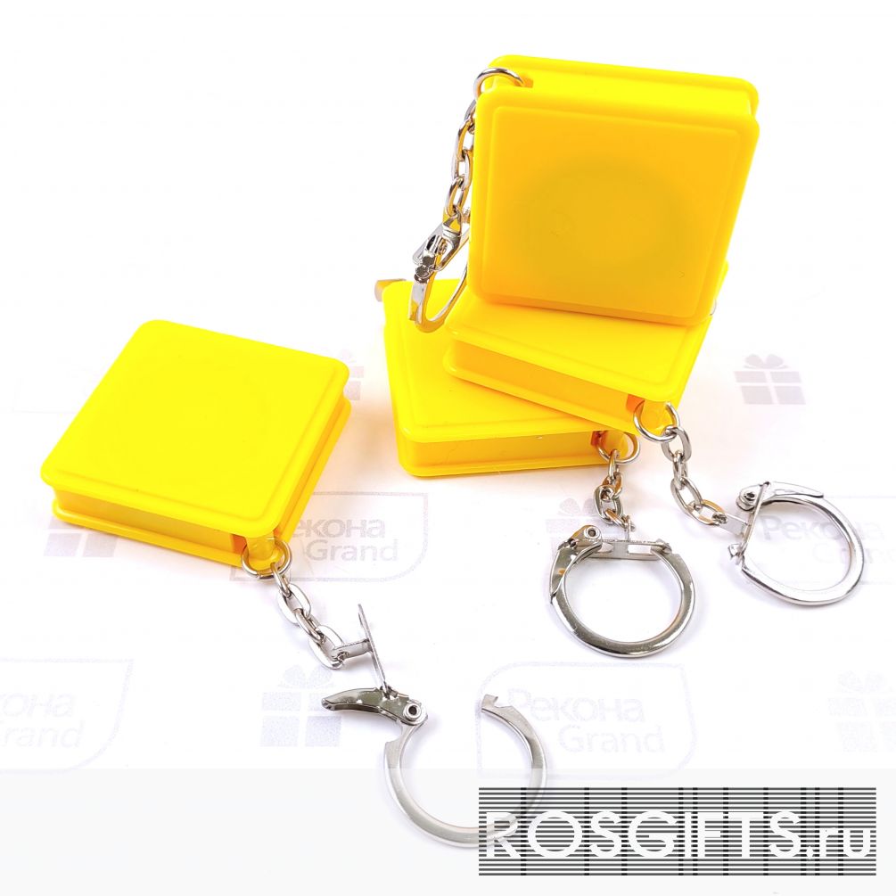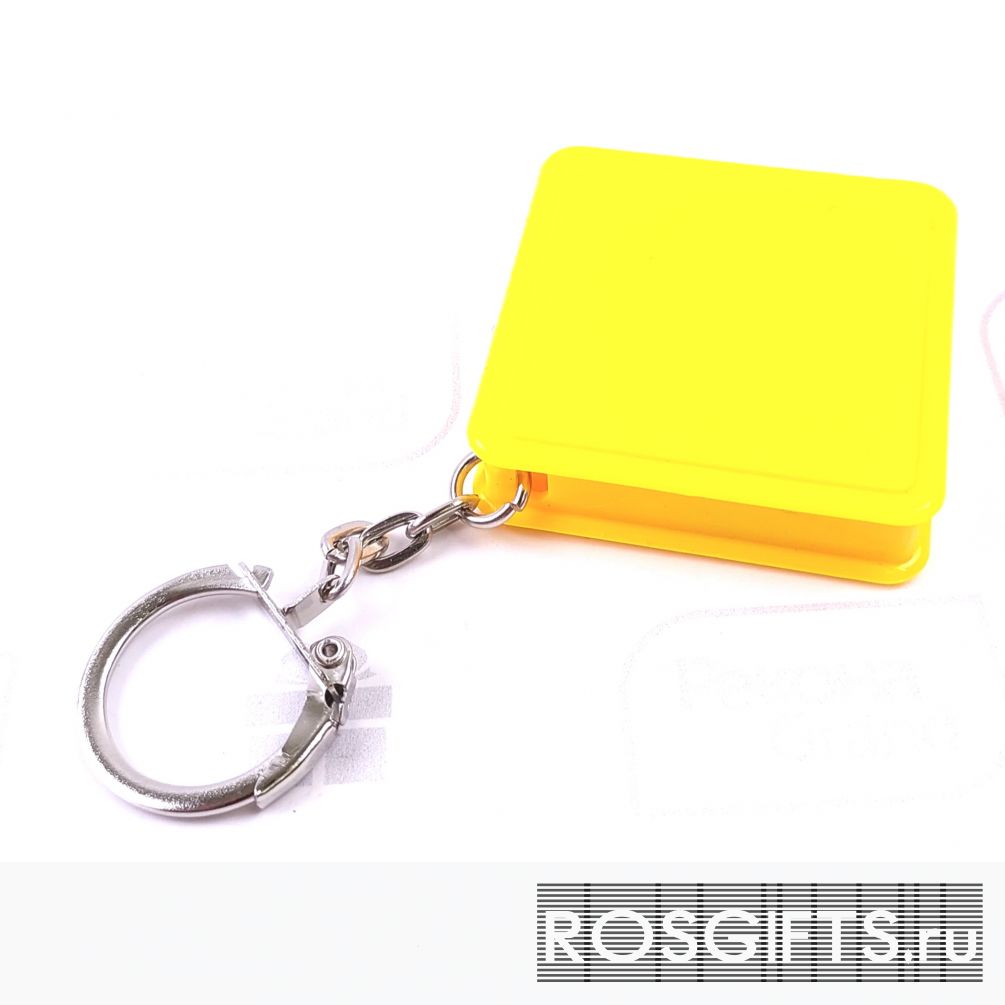 Классической формы брелок с встроенной рулеткой и металлической нитью внутри, длинна рулетки 1 метр. Рулетка оснащена металлическим карабином. На поверхности рулетки можно делать нанесение с двух сторон. Возможное виды нанесения тампопечать, уф-печать.
