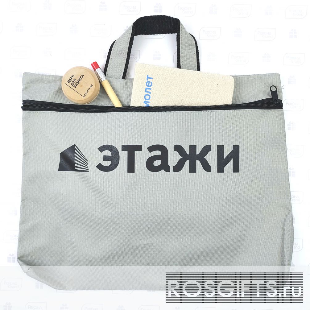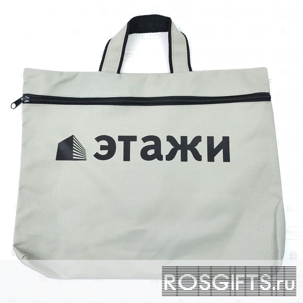В составе комплексного заказа на изготовление сувенирной продукции для семинара, мы сделали сумки для конференций с логотипом агентства ЭТАЖИ со способом нанесения трансфер.