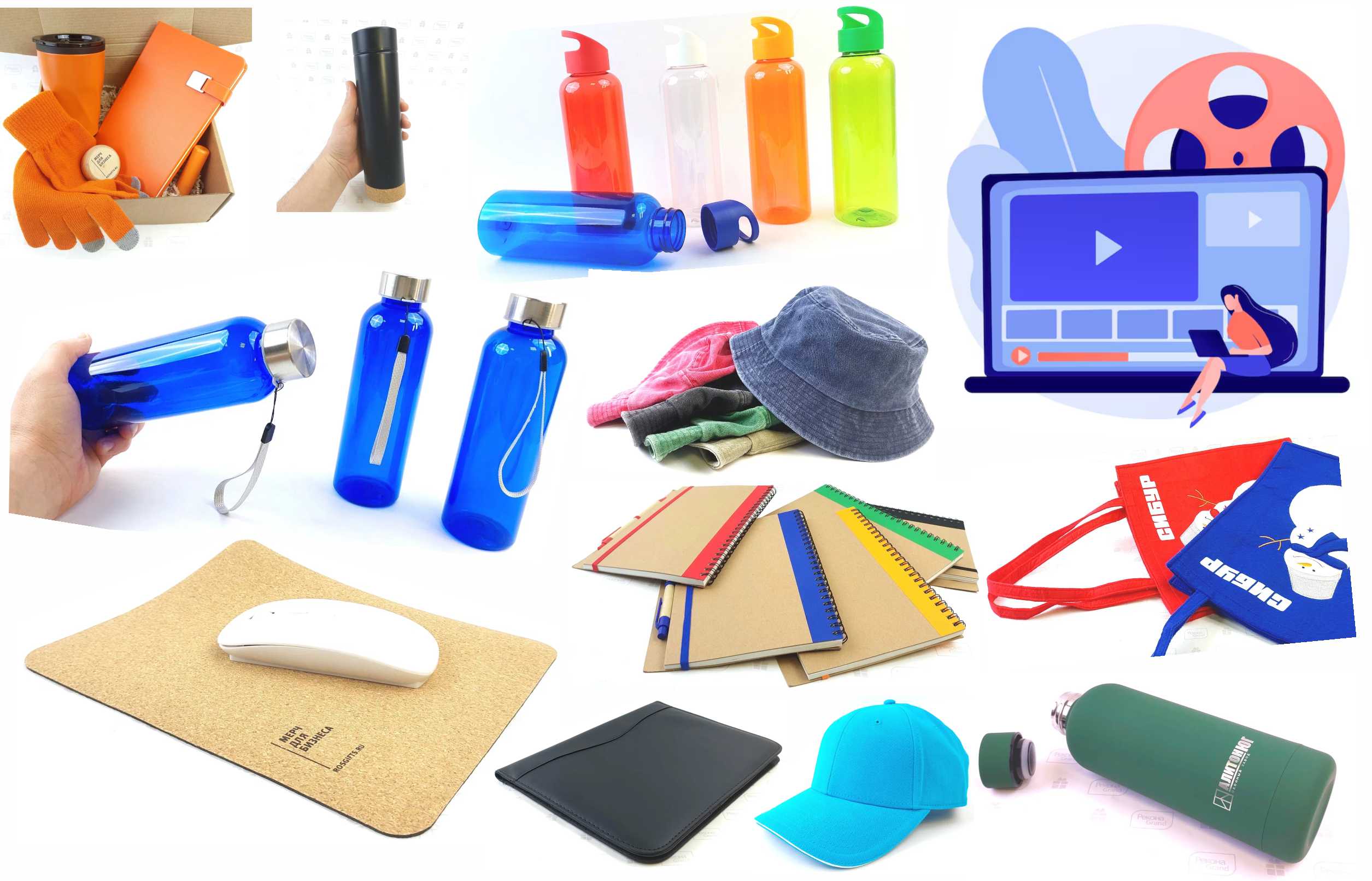 Короткие видео-обзоры про рекламный мерч снимут задачу "как посмотреть" что бы понять что-там с качеством. Видео до 2 минут сэкономит драгоценное время и часто деньги. Мы выгружаем видео на площадки RUTUBE и YouTube на наши каналы. На каналах конечно уже много загружено - ручки, ежедневники, бутылки для воды, кепки и многое другое. Так же делимся интересными примерами из портфолио.